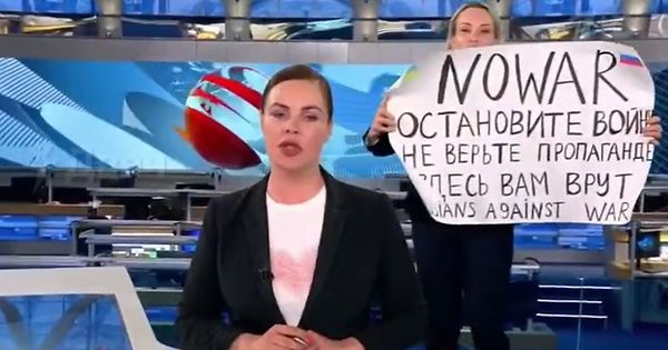 Journalistin stört Nachrichtensendung: „Stoppt den Krieg“