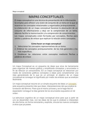 PDF Los Mapas Conceptuales - Unam Los mapas conceptuales o mapas de conceptos son un medio para visualizar ideas o conceptos y las relaciones jerárquicas entre los mismos. Con la elaboración de estos mapas se aprovecha la gran capacidad humana para reconocer pautas en las imágenes visuales, con lo que se facilitan el aprendizaje y el recuerdo de lo aprendido. como se relacionan los conceptos en un mapa conceptual ... Haz clic aquí 👆 para obtener una respuesta a tu pregunta ️ como se relacionan los conceptos en un mapa conceptual , si alguien me puede ayudar danicollajes danicollajes 29.03.2017 Castellano Universidad contestada Como se relacionan los conceptos en un mapa conceptual , si alguien me puede ayudar 1 Ver respuesta Publicidad Publicidad ...