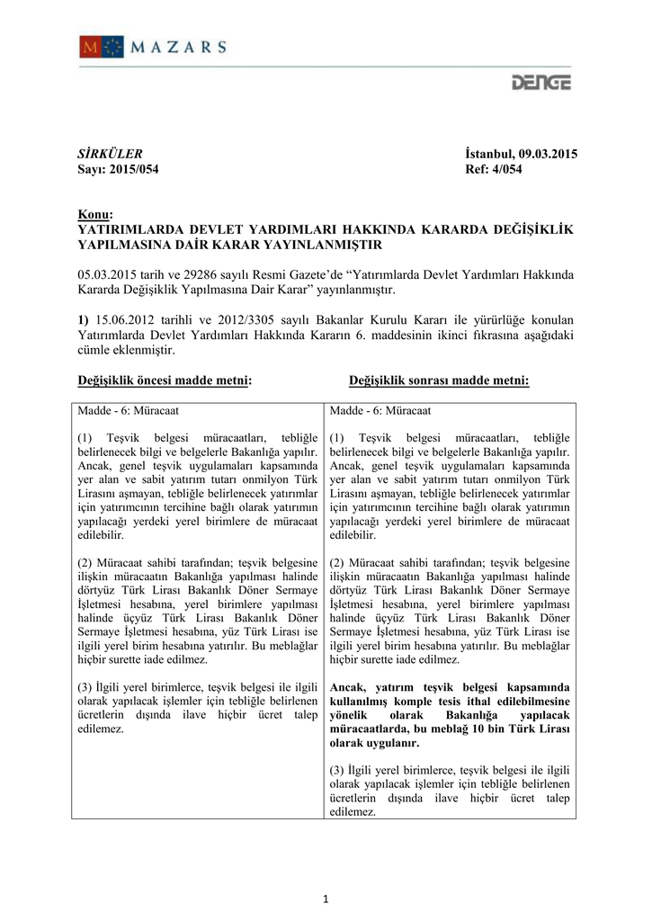 Sirküler2018 - YATIRIMLARDA DEVLET YARDIMLARI HAKKINDA KARAR ...