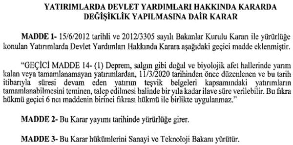 Son dakika haberleri Yatırımlarda Devlet Yardımları Hakkında ...