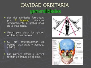 Anatomia: Cavidad Orbitaria - Monografias.com Anatomia de la cavidad orbitaria. Musculos extrinsecos del ojo. Fisologia de la cavidad orbitaria. Patologias de la cavidad orbitaria (ojo). El cuerpo humano posee distintos sistemas los que en conjunto posibilitan la vida. Cada uno de ellos cumple importantísimas funciones, dentro de las cuales se encuentra la no despreciable función del sistema óseo.