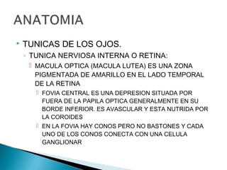 (PDF) Anatomía de la visión del caballo | maritza mejia ... La peri órbita es una membrana fibrosa cónica que encierra el globo del ojo con sus músculos, vasos, nervios, etcétera. Su vértice se inserta alrededor de los forámenes óptico y orbital y su base está, en parte, unida al borde óseo de la órbita y, parcialmente, continúa con Ia capa fibrosa de los párpados.