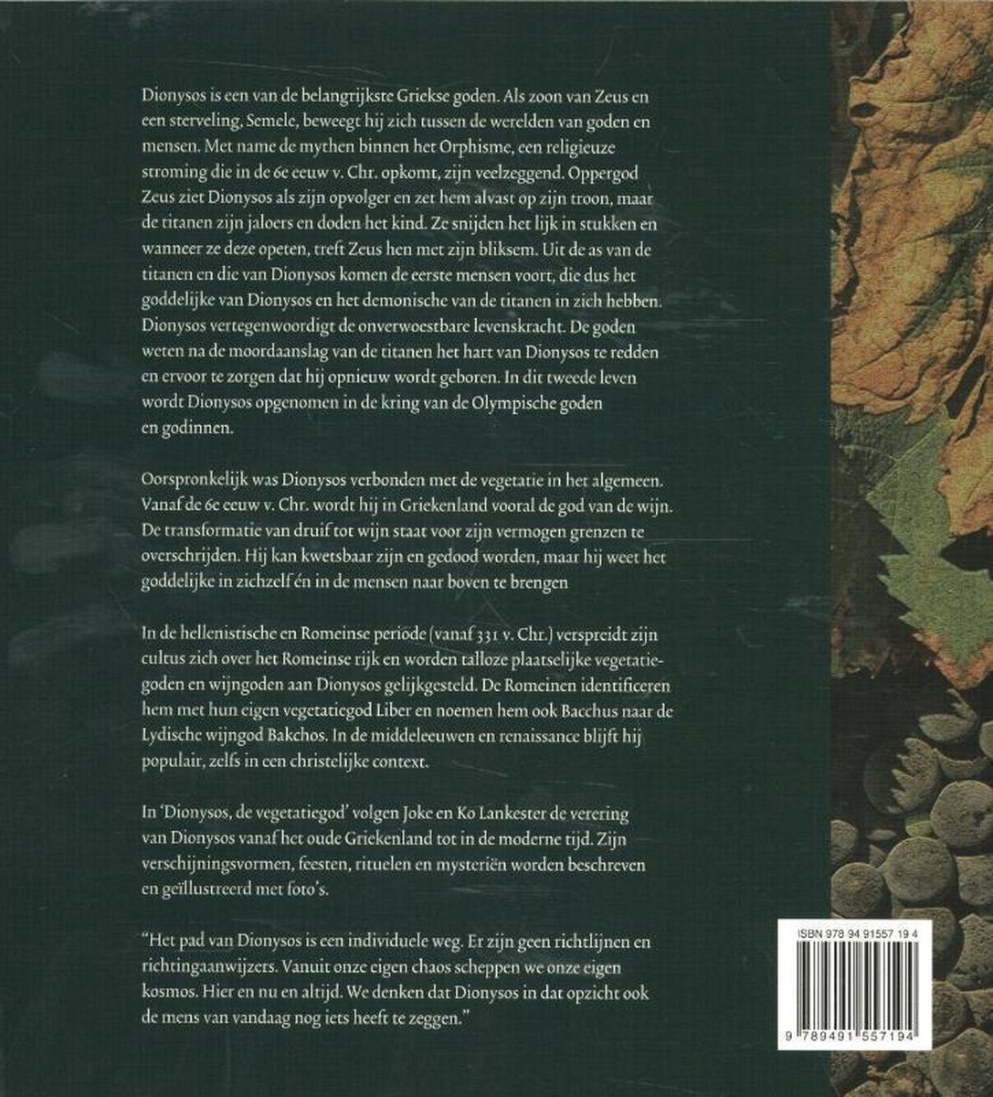 Dionysos en Thyrsus bloem en mythische god Dionysos wordt tijdens een bacchanaal (feest ter ere van Bacchus) Dionysos werd op veel plaatsen in Griekenland vereerd zoals aan de voet van de berg Pentelikon bij Athene waar de bewoners wijn leerden maken, elk jaar wordt hier nu nog ter ere van de mythologische god een festival gehouden.