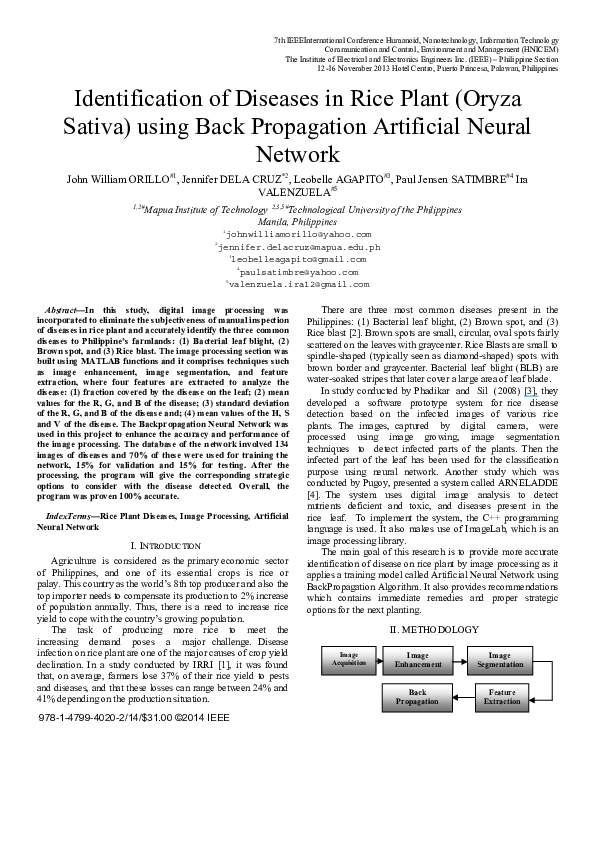 PDF) Identification of diseases in rice plant (oryza sativa ...