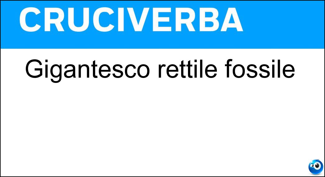 Gigantesco rettile fossile - Cruciverba Gigantesco rettile fossile. Curiosità da non perdere! Definizioni che puoi trovare nei cruciverba e che contengono la parola gigantesco: Uomo forte e gigantesco; Un individuo gigantesco; Gigantesco, ciclopico. Parole crociate con il termine fossile: L'alga microscopica che forma la farina fossile; Enorme mammifero fossile; Ominide fossile dell ...