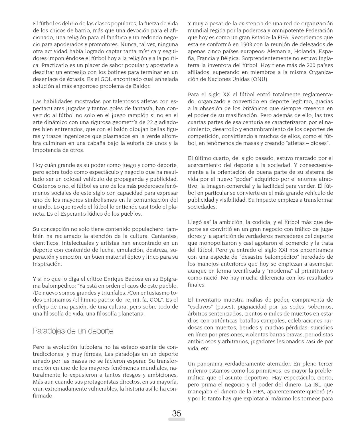 EL FÚTBOL un deporte sano y recreativo Así es el fútbol amado por los mas niños y los mas grandes, es un deporte de equipo jugado entre dos conjuntos de 11 jugadores cada uno y cuatro arbritos que se ocupan de que las normas se cumplan correctamente. Es amplia mente considerado el deporte más popular del mundo, pues participan en él unos 270 millones de personas.